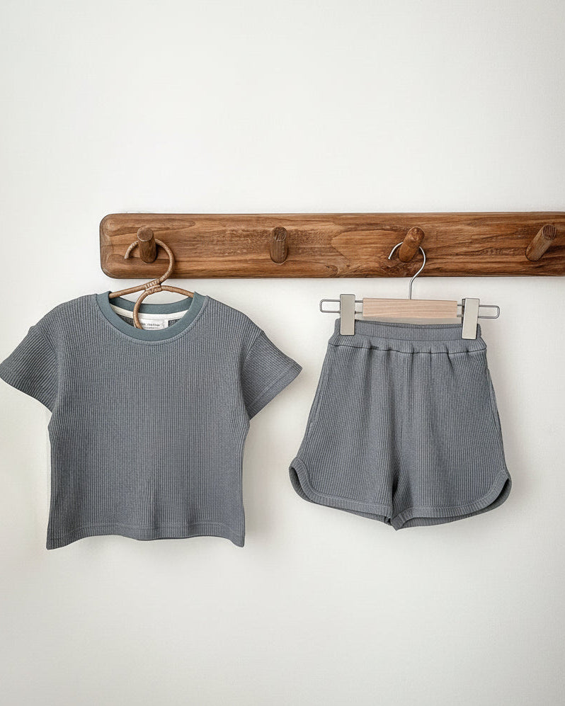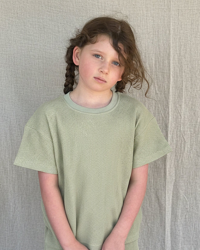 Made from 100% Cotton waffle - a breathable and skin-friendly fabric perfect for warmer days. Boxy cut top with matching shorts. Shorts feature elastic waist and side pockets.  Available in three soft colours.