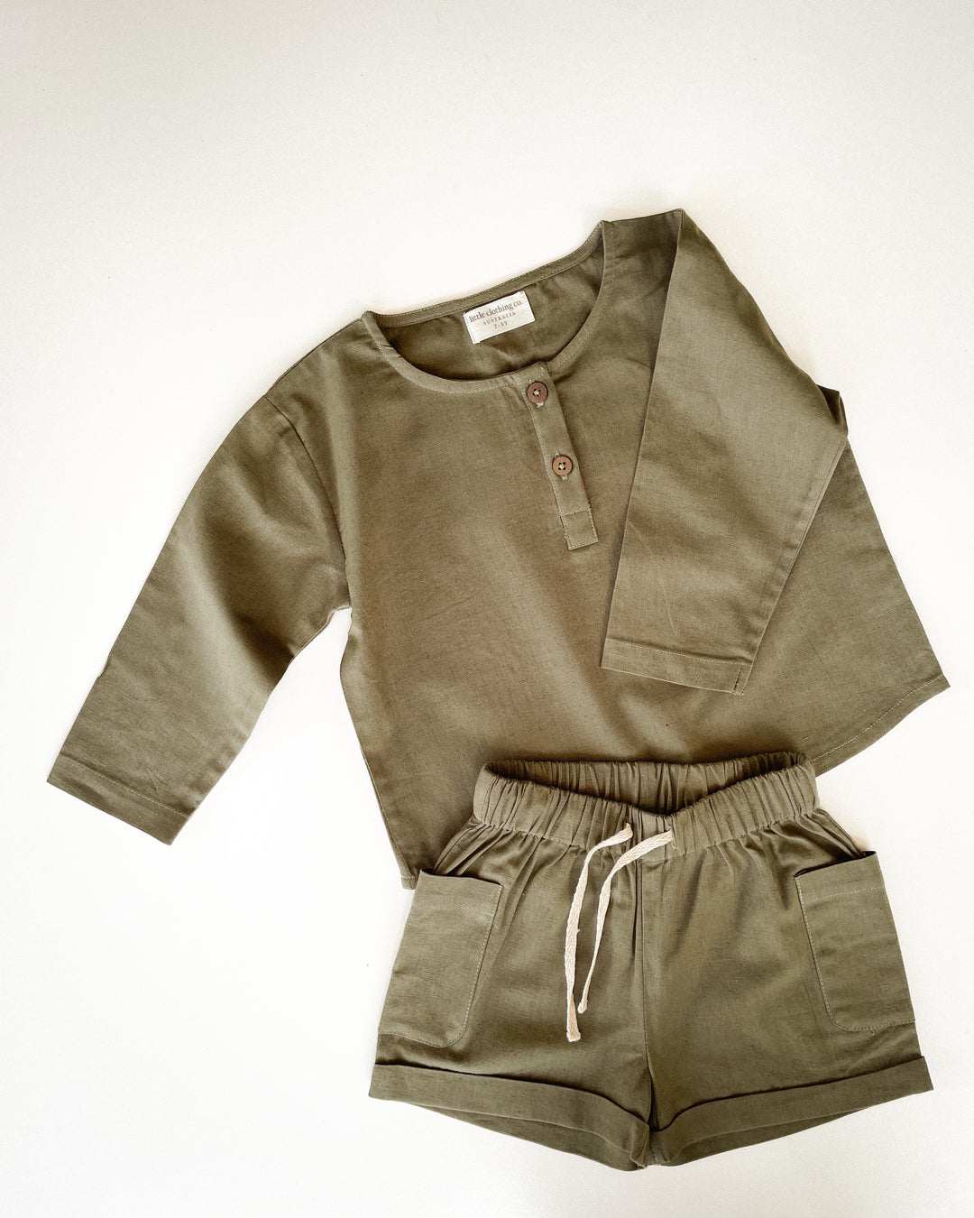 The Summer Days Linen Long Sleeve Shirt in Earth Green