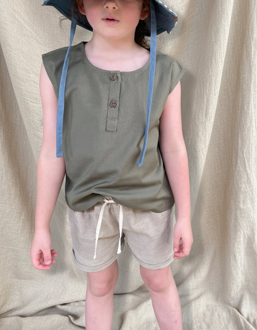 The Summer Days Linen Short Sleeve Shirt in Earth Green